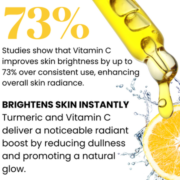 Our Skin Glow Turmeric Serum is formulated to target and visibly reduce dark marks in less than a month. Many users see results within 14 days of consistent use. Packed with natural brightening agents, it helps fade discoloration by promoting cell turnover, leaving your skin looking more even and radiant with consistent use.