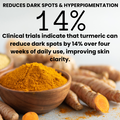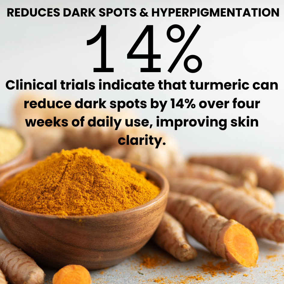 Our Turmeric Serum has powerful antioxidant & anti-inflammatory effects. Clinically proven to reduce dark spot for up to 14 percent after use.