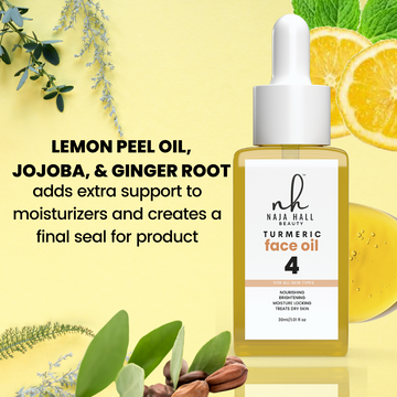 Radiant Turmeric Face Oil: Adds a glowing finish while restoring skin’s vitality and smoothness.