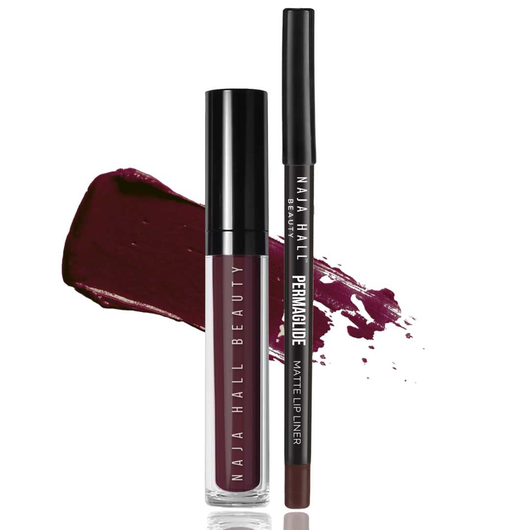 This 2-piece lipkit loaded with pigment for high color payoff. The hue is a deep share of red/brown, which compliments deep skintones and provides a popping contrast on medium and fair skintones.